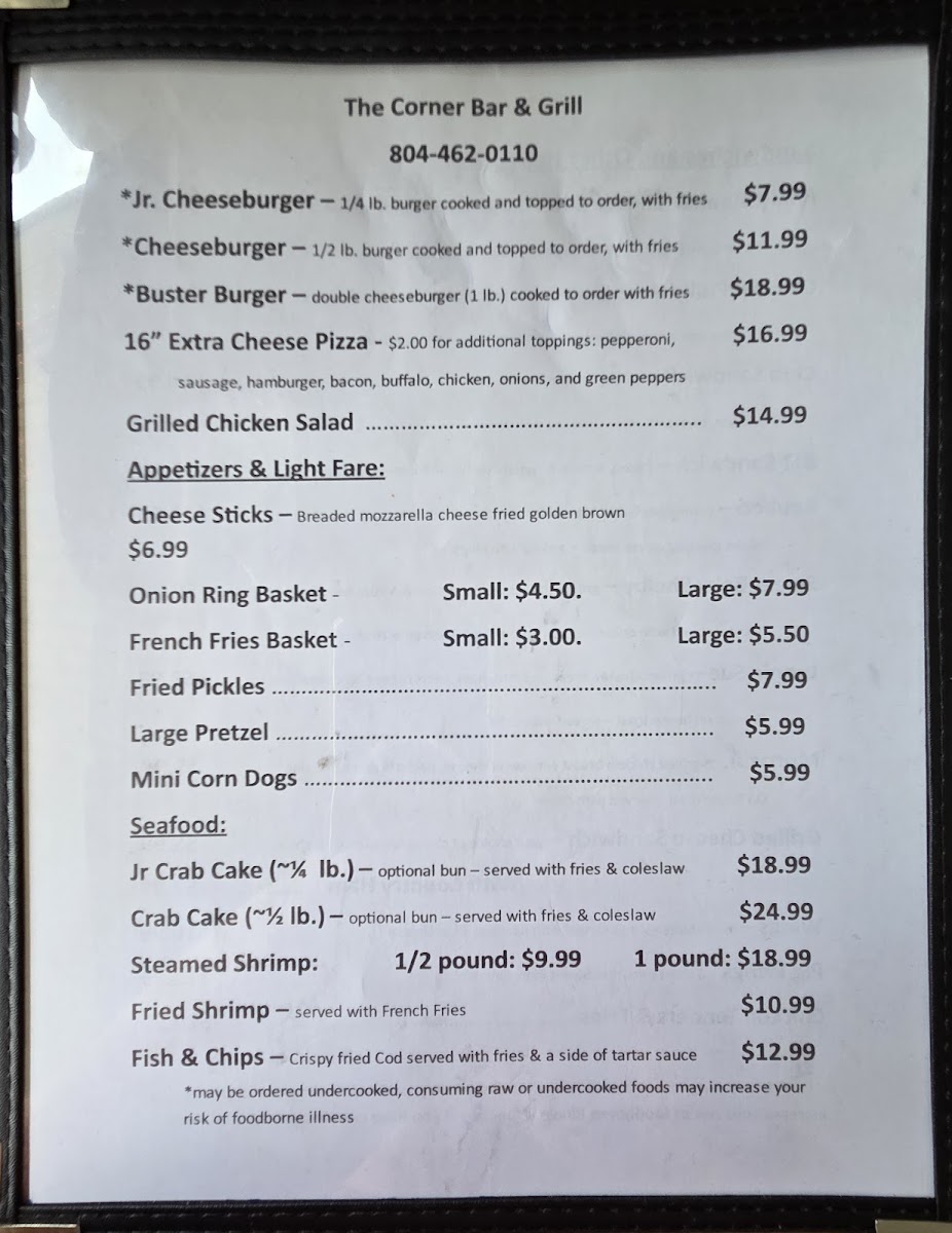 Light fare options like onion rings or a large pretzel fit well with casual, easygoing visits, while seafood and grilled sandwiches offer satisfying choices for those looking for something a bit more substantial. The overall feel is approachable and homey, matching the steady local traffic and warm, welcoming environment that makes Corner a reliable spot for everyday dining.